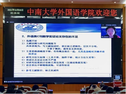 华中科技大学徐锦芬教授则从外语教学实证研究的选题和论证着眼,谈及当下外语类教学实证论文写作与发表的困境,指出目前教学实证论文存在的不足,强调做好外语教学实证研究需要了解微观实证研究特征及其与宏观思辨的关系,培养科研思维,追求微创新,掌握学术研究方法。