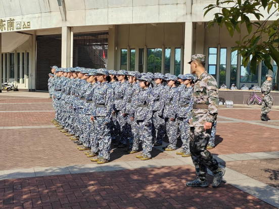 10日下午,训练正式开始。“双脚分开六十度”、“稍息”、“立正”、“跨立”、“报数”、“向后转”、“整理军姿”……迎着阳光,在教官的一声声指令中,一次次悉心指导下,最基本的既定训练项目在有条不紊地向前推进。