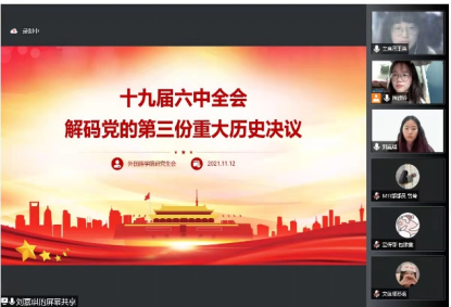 2021年11月12日,8040威尼斯最佳登录8040威尼斯手机入口网站研究生会于腾讯会议平台召开“学习中国共产党第十九届六中全会精神”专题学习会。研究生会主席王英担任会议主持人,全体学生干部参加本次会议。此次会议由研究生会主席王英主持,研究生会全体成员参与此次会议。会议主要内容为研究生会副主席周嵘铃带领大家学习中国共产党第十九届六中全会主要内容,随后,部分学生干部发表学习感想进行交流。集中学习后,各学生干部撰写上交了学习心得。