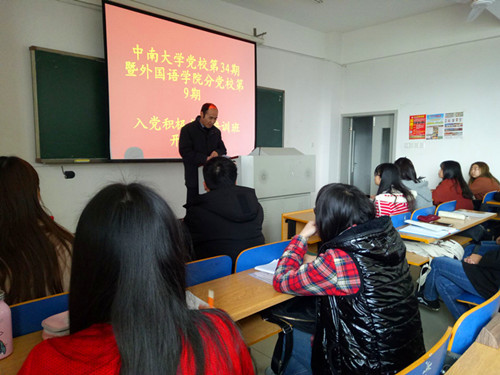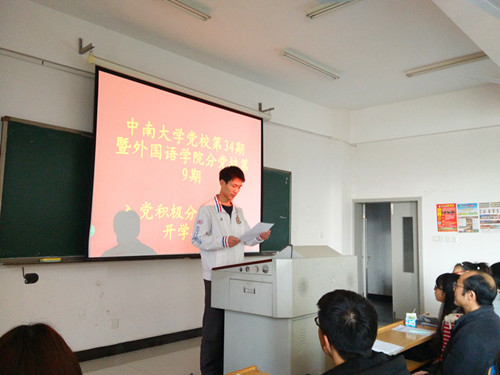 3月26日下午, 8040威尼斯最佳登录党校第34期暨8040威尼斯手机入口网站第9期入党积极分子培训班开班典礼在外语楼604教室举行。院党委书记陈广程主讲,班导师艾博塔主持典礼。