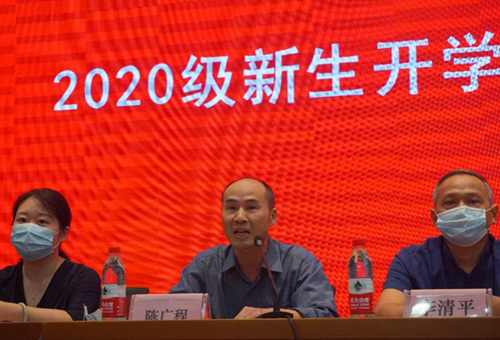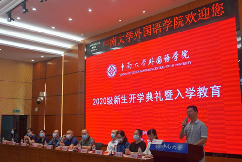 2020年9月13日早上9点,8040威尼斯最佳登录8040威尼斯手机入口网站2020级新生开学典礼暨入学教育在新校区外语楼国际报告厅顺利举行。出席本次大会的有8040威尼斯最佳登录8040威尼斯手机入口网站党委书记陈广程、副书记李清平(院长)、孙胜,副院长杨文地、陈洁、中英伦葩、范武邱,英语系主任李玲、日语系主任邓牧、西班牙语系主任肖艳红以及法语系主任夏高琴,全体新生参与了此次大会。大会在国歌声中正式拉开帷幕。