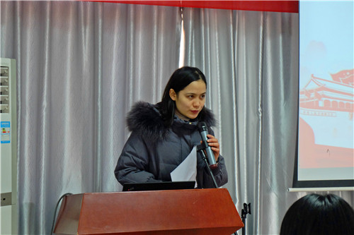 本科生小语种党支部党员何景燕作为老党员代表发言。她提出,党和国家目前正处于新时代浪潮的潮头,亟需高素质人才为祖国建设添砖加瓦。她希望在座的预备党员们能够践“知行合一经世致用”的校训加强理论学习,用科学的思想武装自己乐于奉献,扎根校园燃烧青春。真正做到严格要求自己展现党员风貌争做模范争当先锋