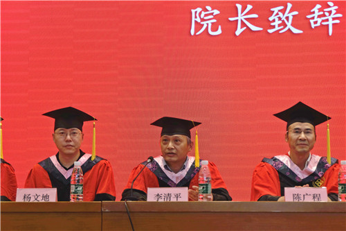 最后,李清平院长发表致辞。他首先代表学院向全体毕业生致以诚挚的祝贺,随后回顾了几位同学的杰出表现及部分优秀毕业生取得的卓越成就。李院长深情地寄语同学们:心有大我,赤诚报国;知行合一,经世致用;博观约取,厚积薄发;终身学习,锤炼本领;立鸿鹄志,做奋斗者;勇于开拓,积极作为。
