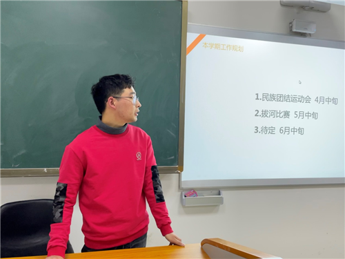 体育部部长唐鹏程总结了上学期举办的趣味运动会、四院联合足球友谊赛、跳绳比赛等活动。秉持“体验体育之趣,挥洒青春活力”、“挥洒激情,阳光足球,团结进取,增进友谊”、“舞动阳光,绳采飞扬”的主题,一场场体育活动异彩纷呈,既促进外语院的同学锻炼身体,又增强了体育运动的趣味性。此外,唐鹏程向大家展示了下学期的工作规划,将民族团结运动会、拔河比赛等正式提上日程。