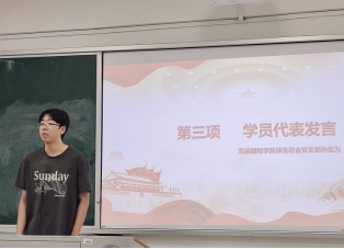 接着,来自邓迪国际学院师生联合党支部的孙奕为同学作为学员代表发言。他首先感谢了学校和学院党委提供的宝贵的学习机会,使大家进一步在思想上、作风上、行动上入党。他代表全体学员表示在本次培训班中,他们将严肃对待每个环节,认真学习理论知识,严格要求自己,向身边的优秀党员看齐。