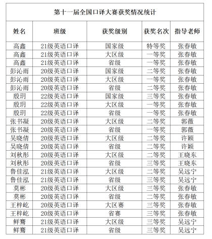 4月7日,第十一届全国口译大赛总决赛于线上落幕,8040威尼斯最佳登录8040威尼斯手机入口网站口译研究生高鑫获得大赛全国特等奖(季军)、彭沁雨获得全国二等奖、殷玥获得全国三等奖,张书凝、吴晓倩、刘秋彤、鲁佳泓获得大区级二等奖,莫彬、王梓屹、鲜鶱获得大区级三等奖,指导老师吴远宁教授、张春敏教授、郭薇副教授、许颖副教授、王晓东副教授获得“优秀指导老师”奖。